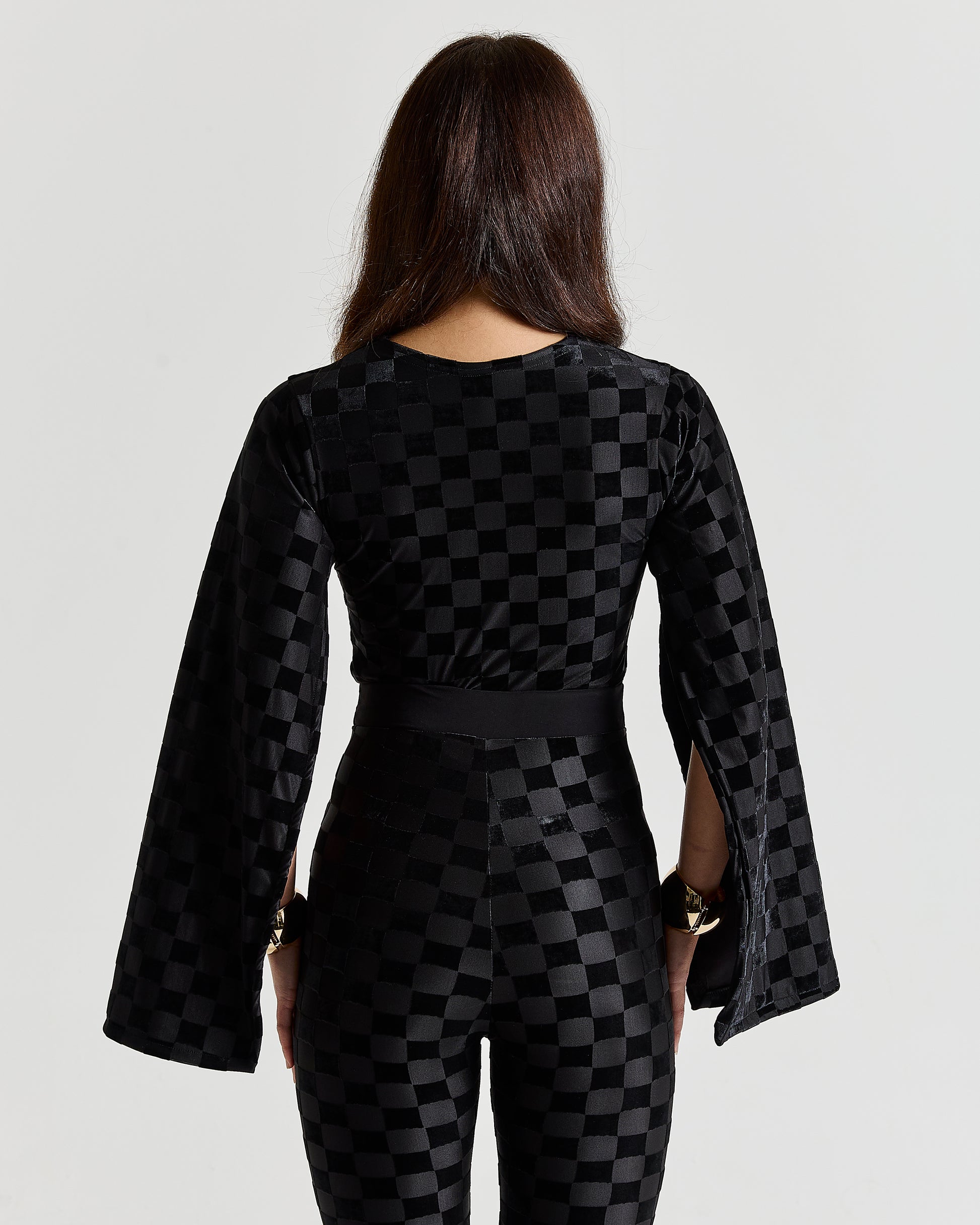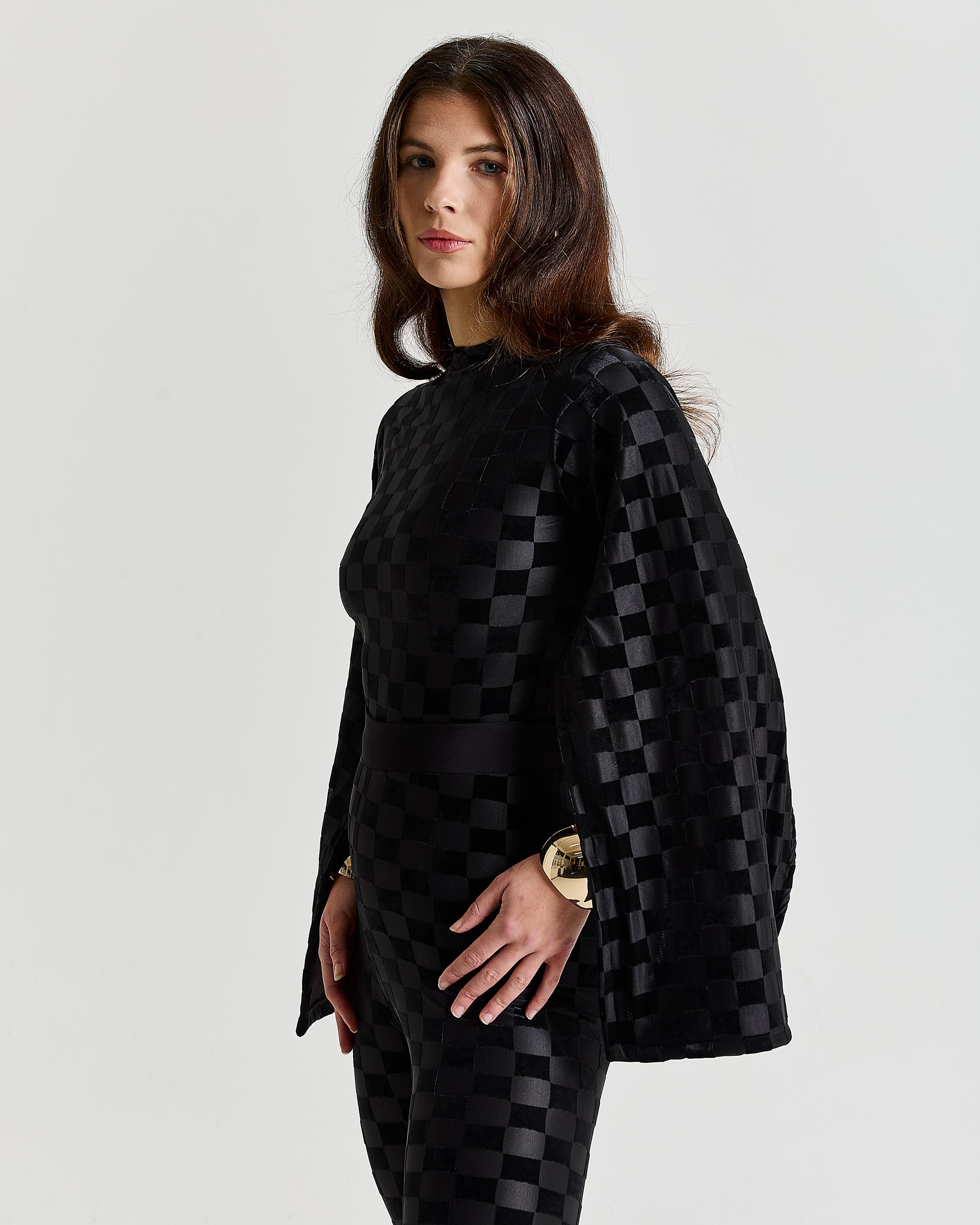Checkered velvet textured Fabric | Stretch Fabric | Cape sleeve | This design is available to be made to measure and can be made in other fabrics/prints and can be tweaked to your liking.