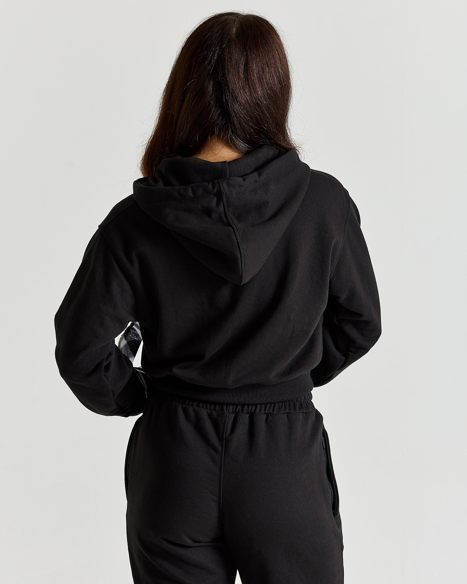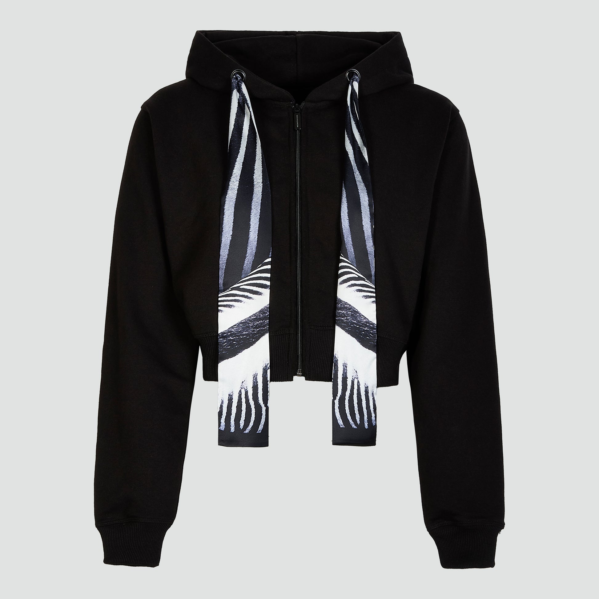 Limited Edition | Cropped hoodie | Safari Printed Scarf drawstring | Loopback Cotton Fleece | Branded black Zipper | Cuffed sleeve | Relaxed Fit